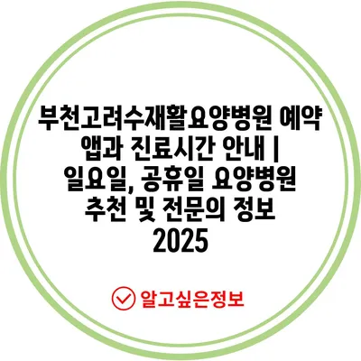 부천고려수재활요양병원 예약 앱과 진료시간 안내 | 일요일, 공휴일 요양병원 추천 및 전문의 정보 2025