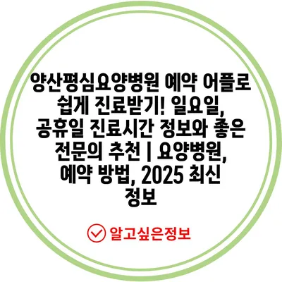 양산평심요양병원 예약 어플로 쉽게 진료받기! 일요일, 공휴일 진료시간 정보와 좋은 전문의 추천 | 요양병원, 예약 방법, 2025 최신 정보