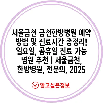 서울금천 금천한방병원 예약 방법 및 진료시간 총정리! 일요일, 공휴일 진료 가능 병원 추천 | 서울금천, 한방병원, 전문의, 2025