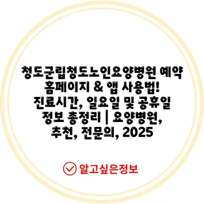 청도군립청도노인요양병원 예약 홈페이지 & 앱 사용법! 진료시간, 일요일 및 공휴일 정보 총정리 | 요양병원, 추천, 전문의, 2025