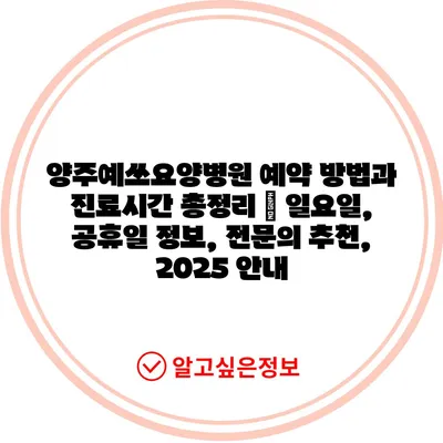 양주예쓰요양병원 예약 방법과 진료시간 총정리 | 일요일, 공휴일 정보, 전문의 추천, 2025 안내