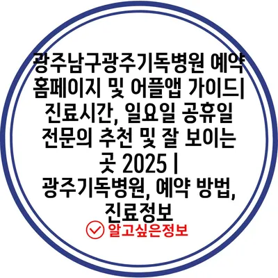 광주남구광주기독병원 예약 홈페이지 및 어플앱 가이드| 진료시간, 일요일 공휴일 전문의 추천 및 잘 보이는 곳 2025 | 광주기독병원, 예약 방법, 진료정보