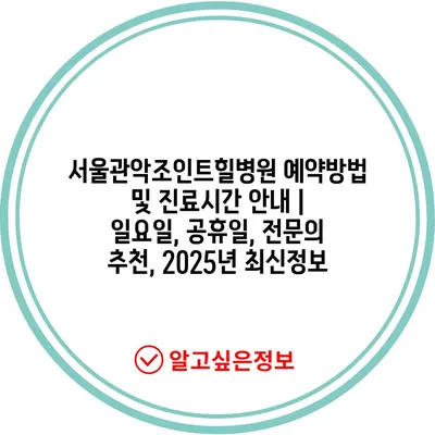 서울관악조인트힐병원 예약방법 및 진료시간 안내 | 일요일, 공휴일, 전문의 추천, 2025년 최신정보