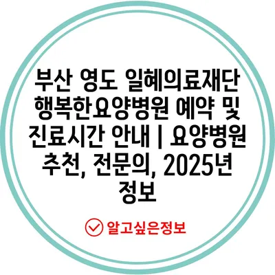 부산 영도 일혜의료재단 행복한요양병원 예약 및 진료시간 안내 | 요양병원 추천, 전문의, 2025년 정보