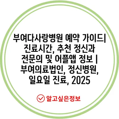 부여다사랑병원 예약 가이드| 진료시간, 추천 정신과 전문의 및 어플앱 정보 | 부여의료법인, 정신병원, 일요일 진료, 2025