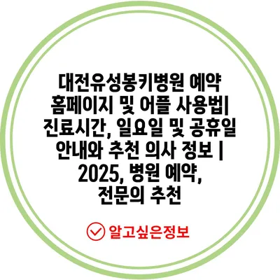 대전유성봉키병원 예약 홈페이지 및 어플 사용법| 진료시간, 일요일 및 공휴일 안내와 추천 의사 정보 | 2025, 병원 예약, 전문의 추천
