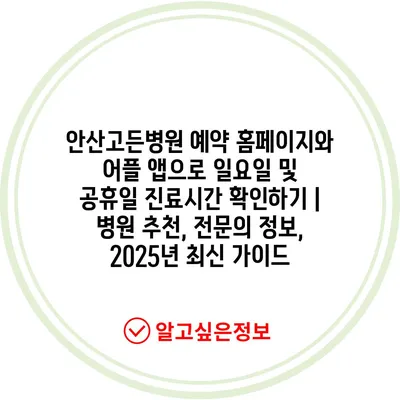 안산고든병원 예약 홈페이지와 어플 앱으로 일요일 및 공휴일 진료시간 확인하기 | 병원 추천, 전문의 정보, 2025년 최신 가이드