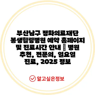 부산남구 정화의료재단 봉생힐링병원 예약 홈페이지 및 진료시간 안내 | 병원 추천, 전문의, 일요일 진료, 2025 정보