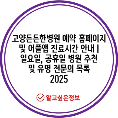 고양든든한병원 예약 홈페이지 및 어플앱 진료시간 안내 | 일요일, 공휴일 병원 추천 및 유명 전문의 목록 2025