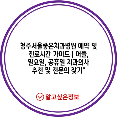 청주서울좋은치과병원 예약 및 진료시간 가이드 | 어플, 일요일, 공휴일 치과의사 추천 및 전문의 찾기”