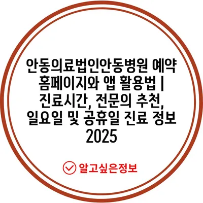 안동의료법인안동병원 예약 홈페이지와 앱 활용법 | 진료시간, 전문의 추천, 일요일 및 공휴일 진료 정보 2025