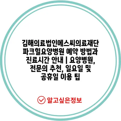 김해의료법인에스씨의료재단 파크힐요양병원 예약 방법과 진료시간 안내 | 요양병원, 전문의 추천, 일요일 및 공휴일 이용 팁