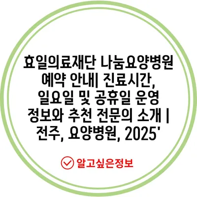 효일의료재단 나눔요양병원 예약 안내| 진료시간, 일요일 및 공휴일 운영 정보와 추천 전문의 소개 | 전주, 요양병원, 2025′