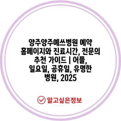 양주양주예쓰병원 예약 홈페이지와 진료시간, 전문의 추천 가이드 | 어플, 일요일, 공휴일, 유명한 병원, 2025