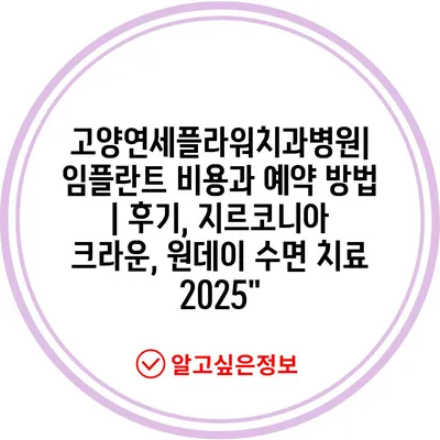 고양연세플라워치과병원| 임플란트 비용과 예약 방법 | 후기, 지르코니아 크라운, 원데이 수면 치료 2025″