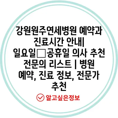 강원원주연세병원 예약과 진료시간 안내| 일요일・공휴일 의사 추천 전문의 리스트 | 병원 예약, 진료 정보, 전문가 추천