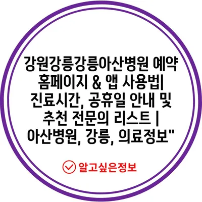 강원강릉강릉아산병원 예약 홈페이지 & 앱 사용법| 진료시간, 공휴일 안내 및 추천 전문의 리스트 | 아산병원, 강릉, 의료정보”
