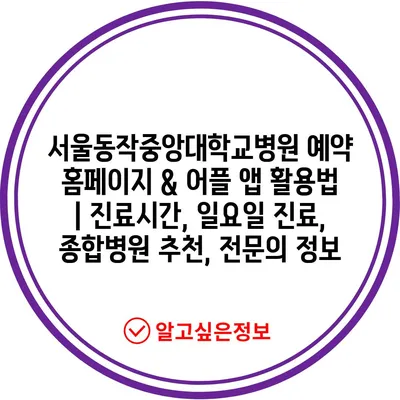 서울동작중앙대학교병원 예약 홈페이지 & 어플 앱 활용법 | 진료시간, 일요일 진료, 종합병원 추천, 전문의 정보
