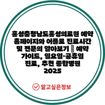 홍성충청남도홍성의료원 예약 홈페이지와 어플로 진료시간 및 전문의 알아보기 | 예약 가이드, 일요일·공휴일 진료, 추천 종합병원 2025