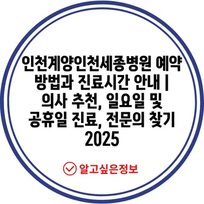 인천계양인천세종병원 예약 방법과 진료시간 안내 | 의사 추천, 일요일 및 공휴일 진료, 전문의 찾기 2025