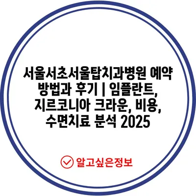 서울서초서울탑치과병원 예약 방법과 후기 | 임플란트, 지르코니아 크라운, 비용, 수면치료 분석 2025