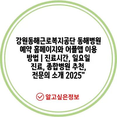 강원동해근로복지공단 동해병원 예약 홈페이지와 어플앱 이용 방법 | 진료시간, 일요일 진료, 종합병원 추천, 전문의 소개 2025″