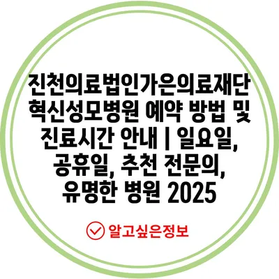 진천의료법인가은의료재단 혁신성모병원 예약 방법 및 진료시간 안내 | 일요일, 공휴일, 추천 전문의, 유명한 병원 2025