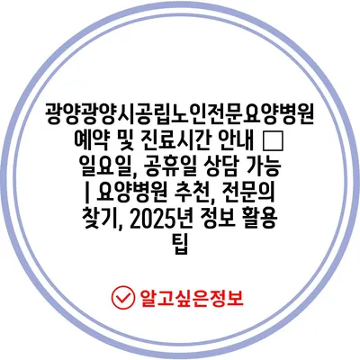 광양광양시공립노인전문요양병원 예약 및 진료시간 안내 – 일요일, 공휴일 상담 가능 | 요양병원 추천, 전문의 찾기, 2025년 정보 활용 팁