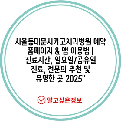 서울동대문시카고치과병원 예약 홈페이지 & 앱 이용법 | 진료시간, 일요일/공휴일 진료, 전문의 추천 및 유명한 곳 2025″
