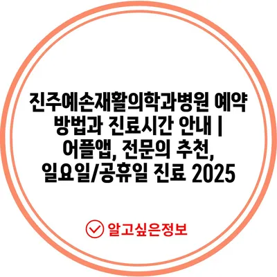 진주예손재활의학과병원 예약 방법과 진료시간 안내 | 어플앱, 전문의 추천, 일요일/공휴일 진료 2025