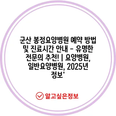 군산 봉정요양병원 예약 방법 및 진료시간 안내 – 유명한 전문의 추천! | 요양병원, 일반요양병원, 2025년 정보’