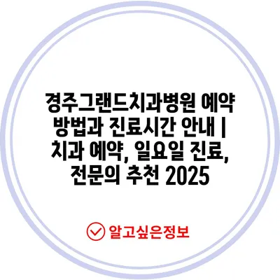 경주그랜드치과병원 예약 방법과 진료시간 안내 | 치과 예약, 일요일 진료, 전문의 추천 2025