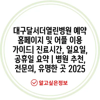 대구달서더열린병원 예약 홈페이지 및 어플 이용 가이드| 진료시간, 일요일, 공휴일 요약 | 병원 추천, 전문의, 유명한 곳 2025