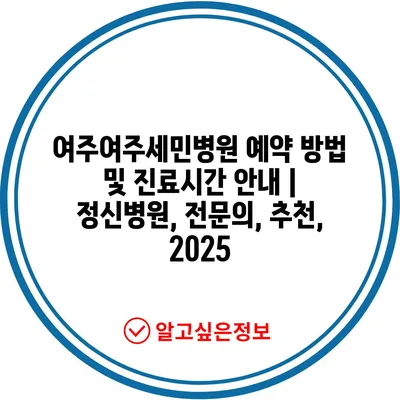 여주여주세민병원 예약 방법 및 진료시간 안내 | 정신병원, 전문의, 추천, 2025