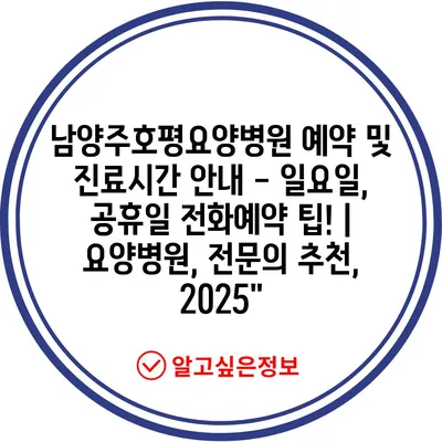 남양주호평요양병원 예약 및 진료시간 안내 – 일요일, 공휴일 전화예약 팁! | 요양병원, 전문의 추천, 2025″