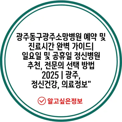 광주동구광주소망병원 예약 및 진료시간 완벽 가이드| 일요일 및 공휴일 정신병원 추천, 전문의 선택 방법 2025 | 광주, 정신건강, 의료정보”