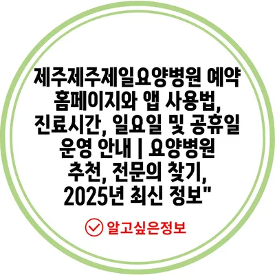 제주제주제일요양병원 예약 홈페이지와 앱 사용법, 진료시간, 일요일 및 공휴일 운영 안내 | 요양병원 추천, 전문의 찾기, 2025년 최신 정보”