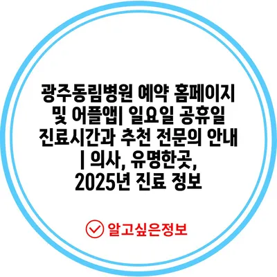 광주동림병원 예약 홈페이지 및 어플앱| 일요일 공휴일 진료시간과 추천 전문의 안내 | 의사, 유명한곳, 2025년 진료 정보