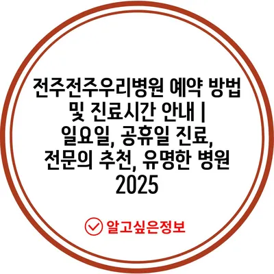 전주전주우리병원 예약 방법 및 진료시간 안내 | 일요일, 공휴일 진료, 전문의 추천, 유명한 병원 2025