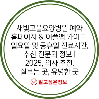 새빛고을요양병원 예약 홈페이지 & 어플앱 가이드| 일요일 및 공휴일 진료시간, 추천 전문의 정보 | 2025, 의사 추천, 잘보는 곳, 유명한 곳