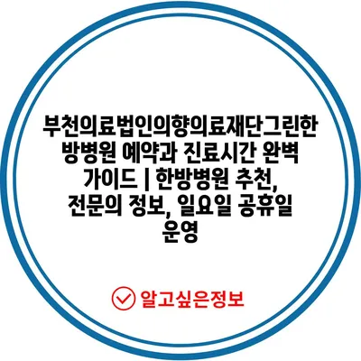 부천의료법인의향의료재단그린한방병원 예약과 진료시간 완벽 가이드 | 한방병원 추천, 전문의 정보, 일요일 공휴일 운영
