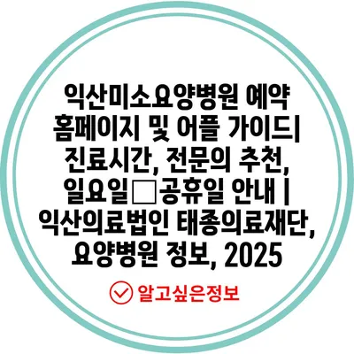 익산미소요양병원 예약 홈페이지 및 어플 가이드| 진료시간, 전문의 추천, 일요일・공휴일 안내 | 익산의료법인 태종의료재단, 요양병원 정보, 2025