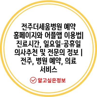 전주더세움병원 예약 홈페이지와 어플앱 이용법| 진료시간, 일요일·공휴일 의사추천 및 전문의 정보 | 전주, 병원 예약, 의료 서비스