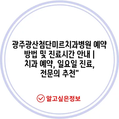 광주광산첨단미르치과병원 예약 방법 및 진료시간 안내 | 치과 예약, 일요일 진료, 전문의 추천”