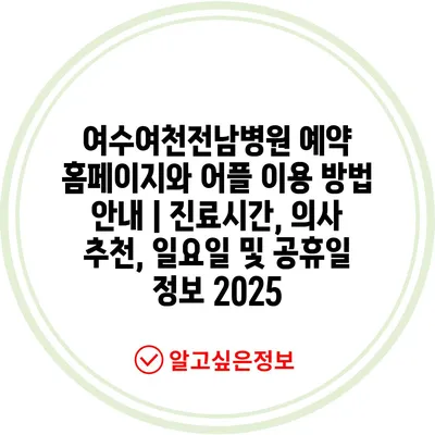 여수여천전남병원 예약 홈페이지와 어플 이용 방법 안내 | 진료시간, 의사 추천, 일요일 및 공휴일 정보 2025