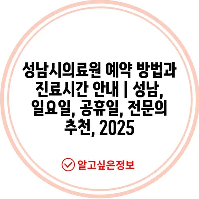 성남시의료원 예약 방법과 진료시간 안내 | 성남, 일요일, 공휴일, 전문의 추천, 2025