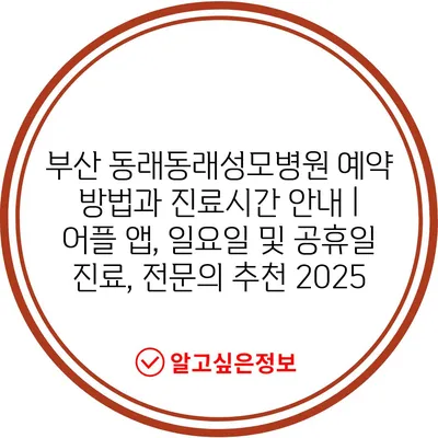 부산 동래동래성모병원 예약 방법과 진료시간 안내 | 어플 앱, 일요일 및 공휴일 진료, 전문의 추천 2025