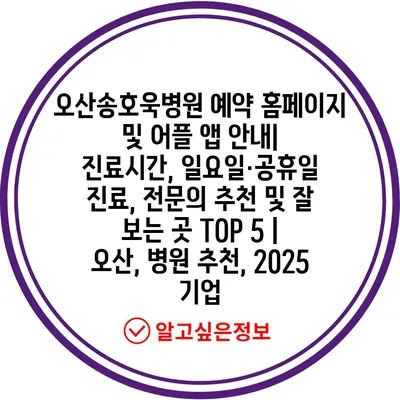 오산송호욱병원 예약 홈페이지 및 어플 앱 안내| 진료시간, 일요일·공휴일 진료, 전문의 추천 및 잘 보는 곳 TOP 5 | 오산, 병원 추천, 2025 기업