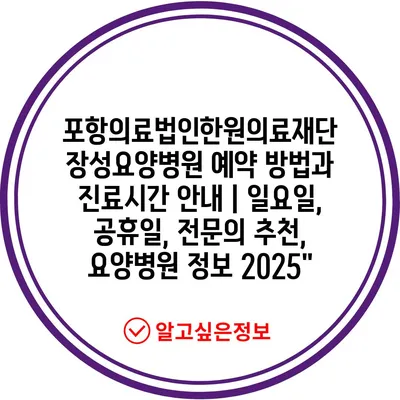 포항의료법인한원의료재단 장성요양병원 예약 방법과 진료시간 안내 | 일요일, 공휴일, 전문의 추천, 요양병원 정보 2025″