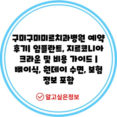 구미구미미르치과병원 예약 후기| 임플란트, 지르코니아 크라운 및 비용 가이드 | 뼈이식, 원데이 수면, 보험 정보 포함